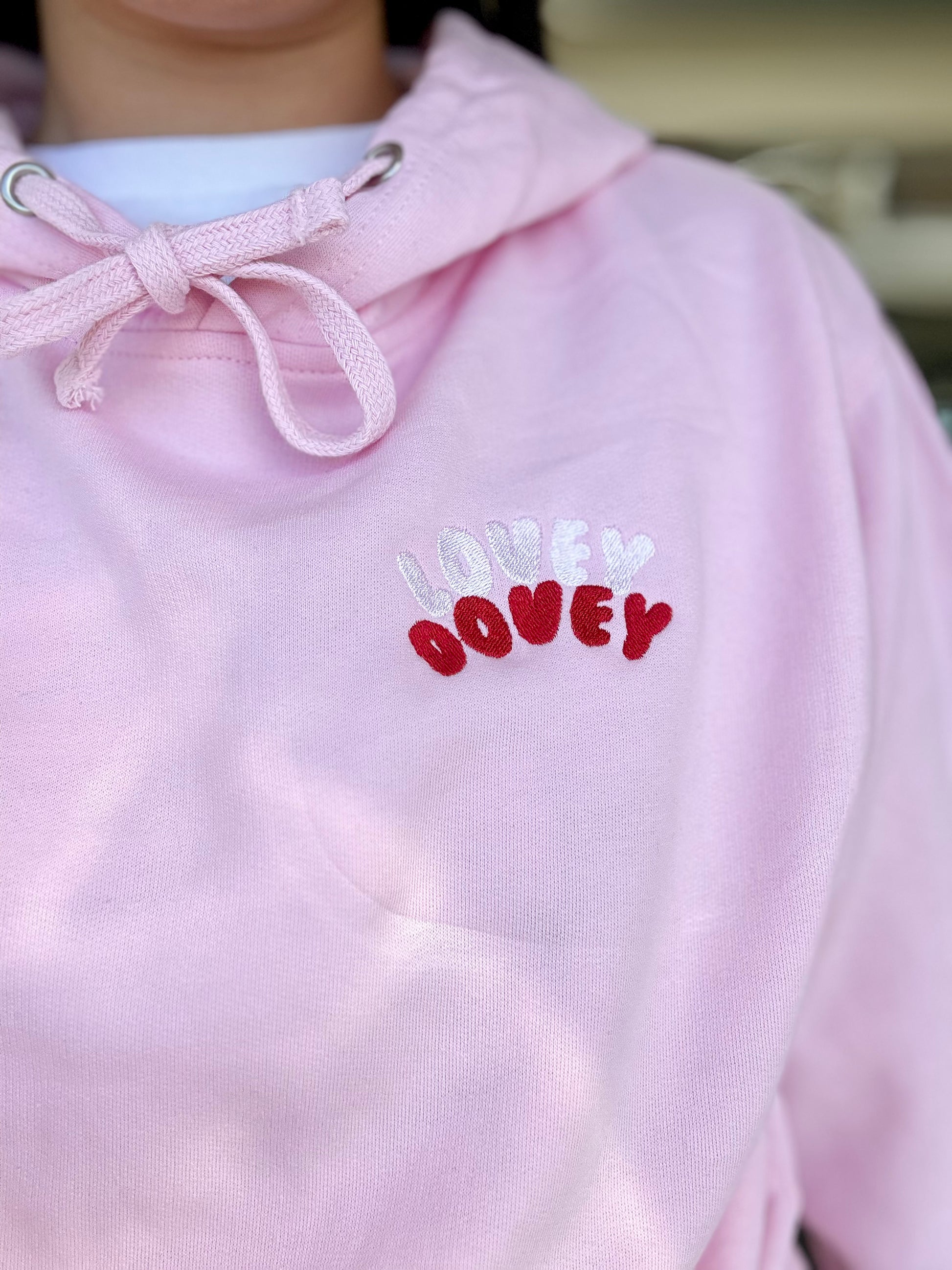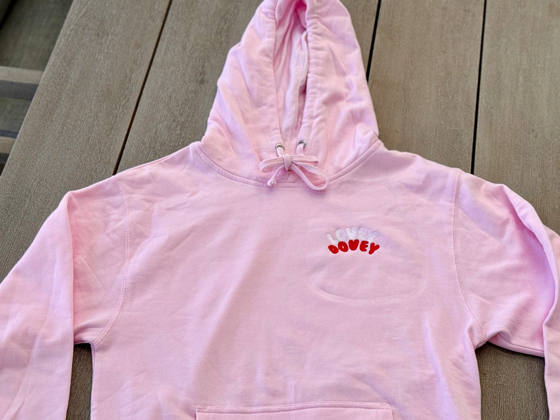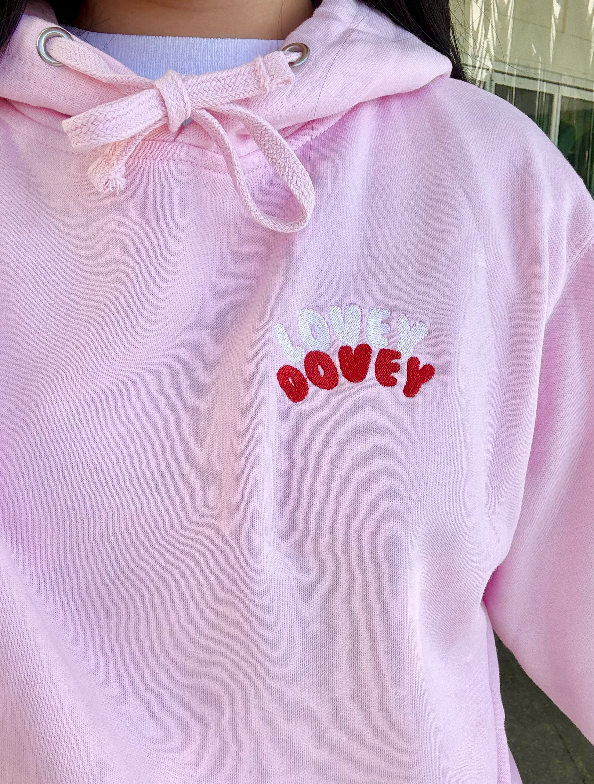 An embroidered 'Lovey dovey' hoodie! A super cute and multi-colour design that stands out on the front of the hoodie