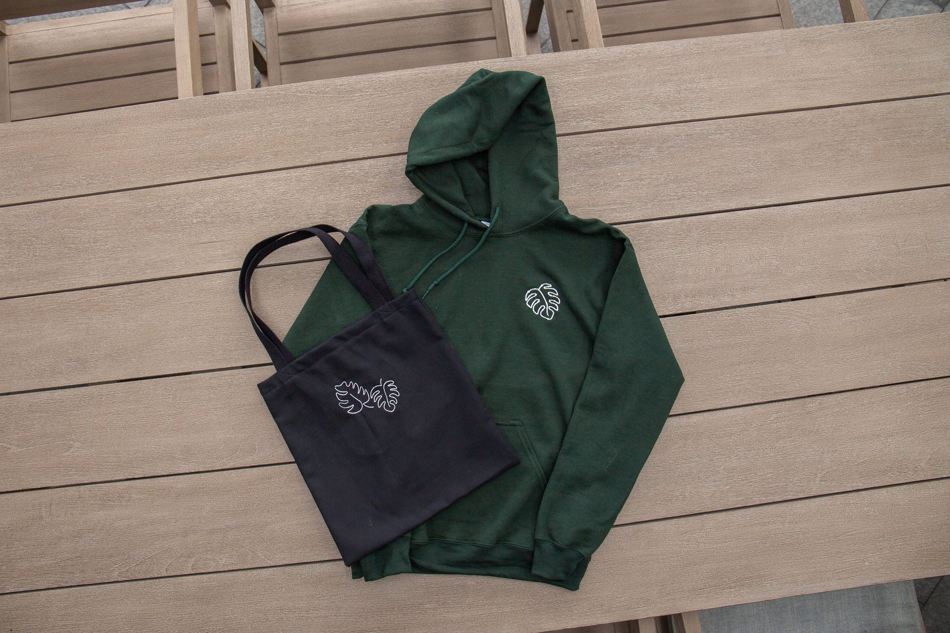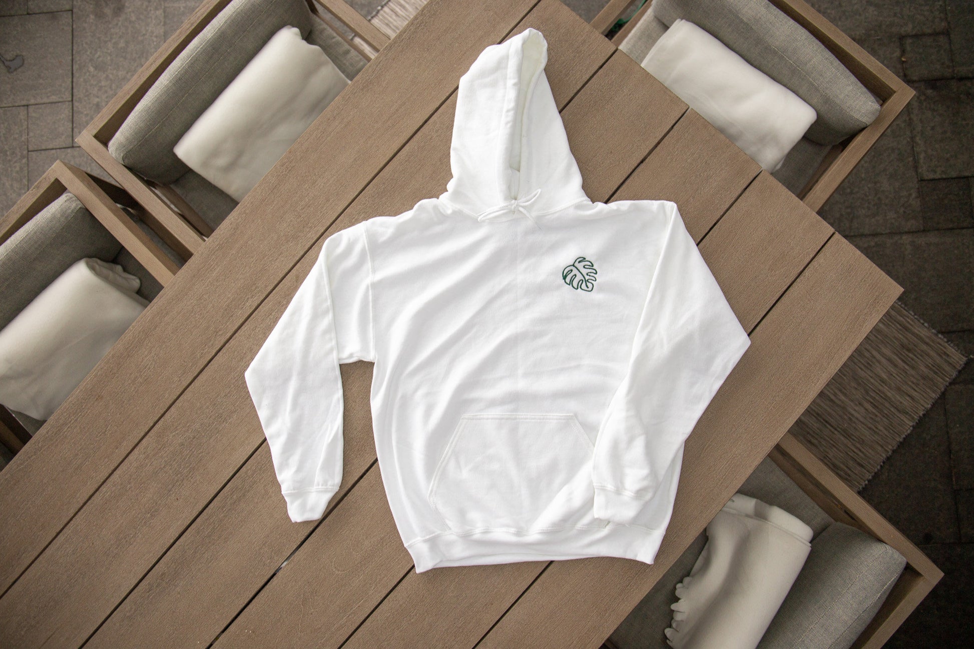 A super soft and cozy hoodie with an embroidered monstera leaf.