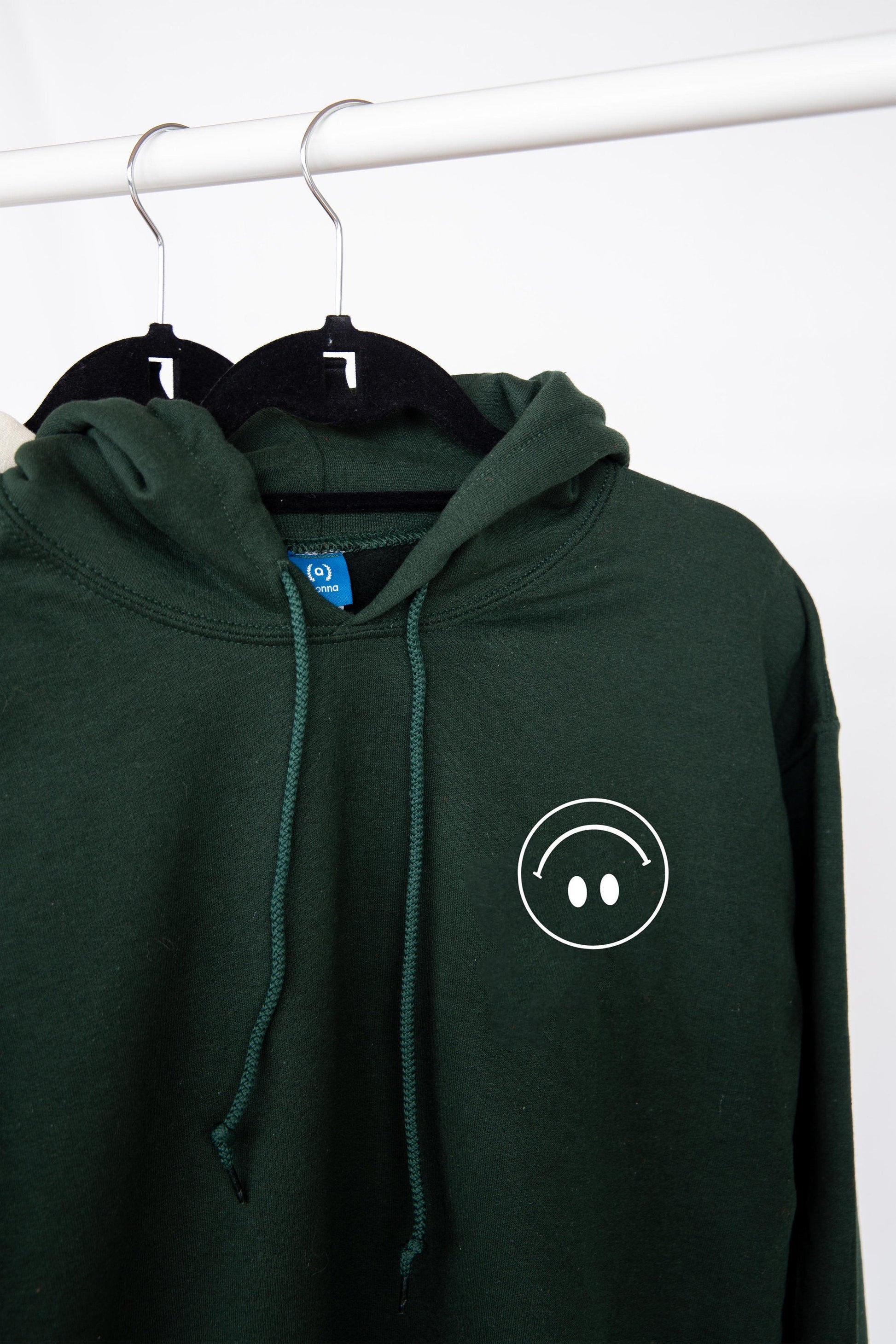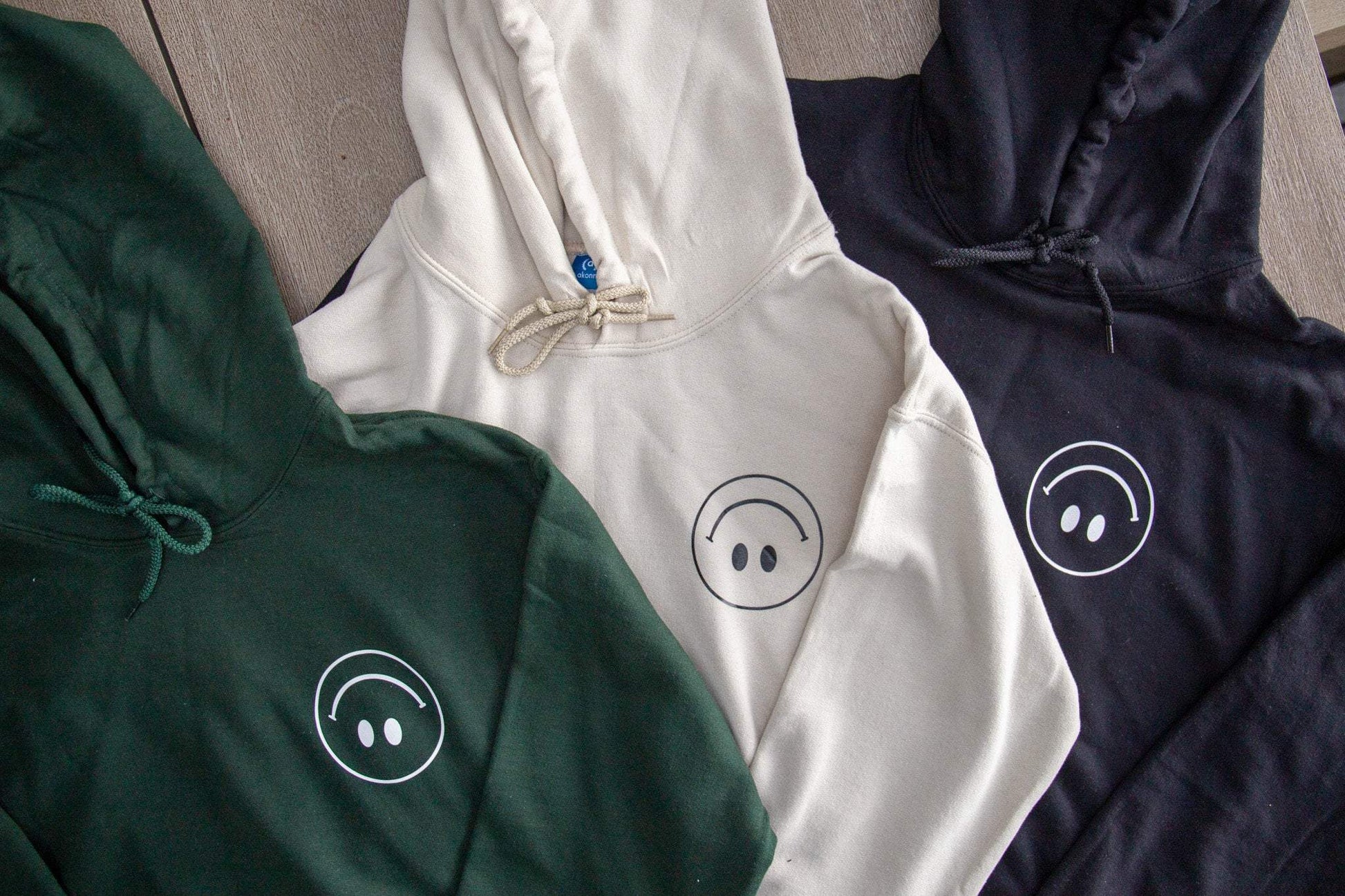 A minimalist upside down happy face hoodie that will keep you warm all year round!